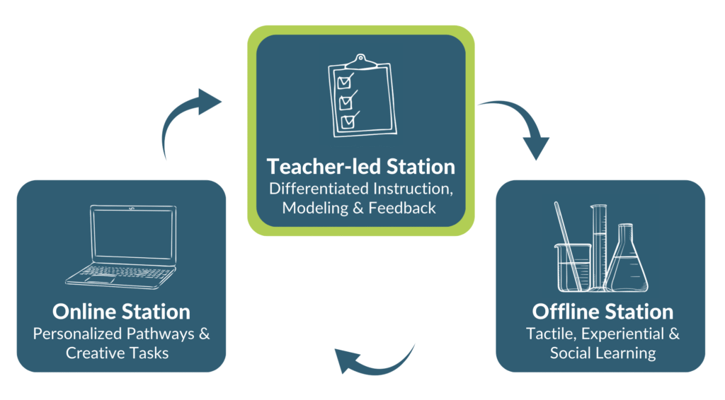 At the teacher-led station, teachers can embed feedback into the learning process. They can read drafts of student writing, examine problem-solving steps, or review projects in progress as students work, offering suggestions students can immediately apply. By moving feedback loops into the classroom and narrowing the focus of feedback (e.g., clarity of ideas, word choice, structure), teachers can make feedback personal and meaningful.