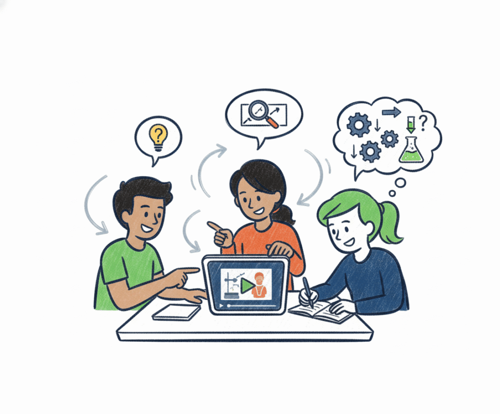 Prediction checkpoints keep students engaged from start to finish, transforming viewing into an inquiry-driven process that builds curiosity, develops reasoning, and encourages flexibility in thinking.
